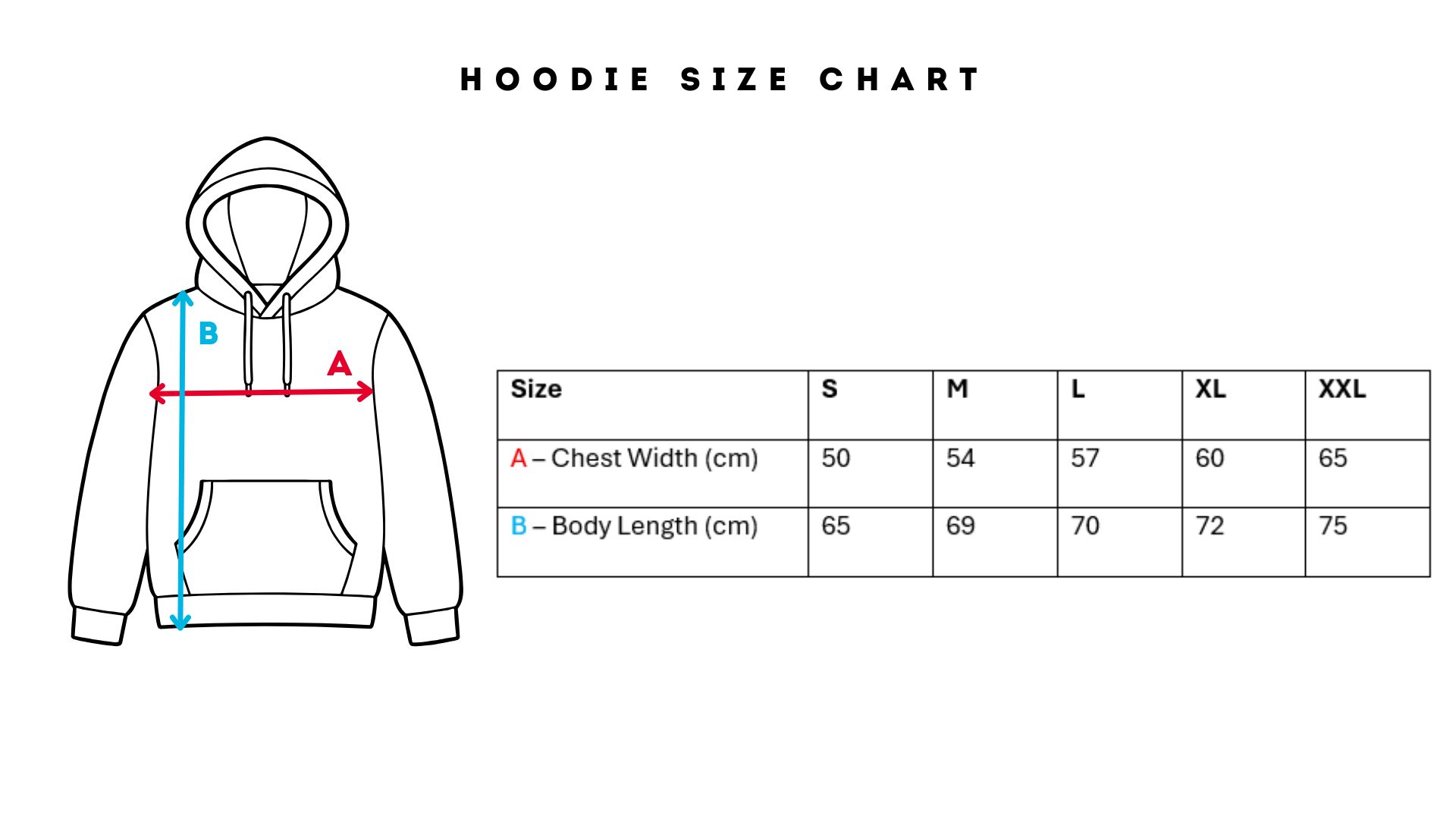 We strongly advise that you check out the sizing chart below to ensure your hoodie is the correct size!