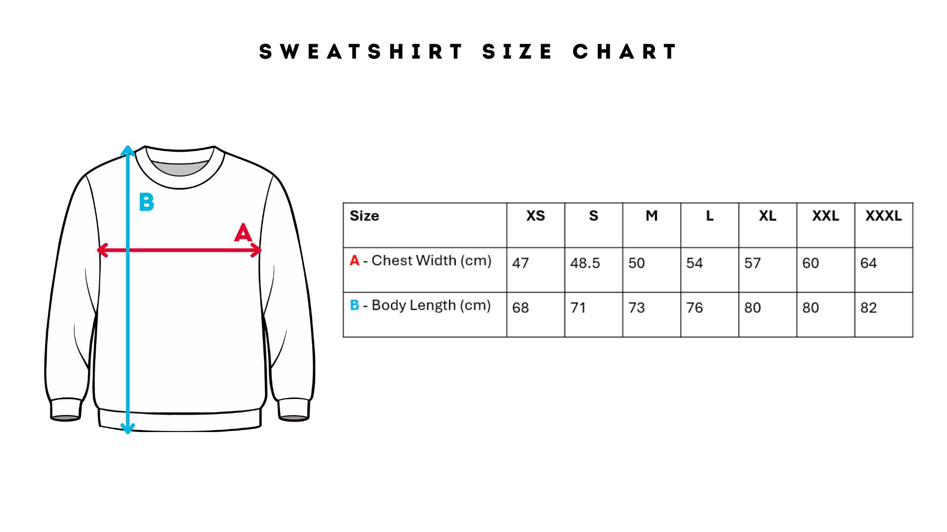 We strongly advise that you check out the sizing chart below to ensure your sweatshirt is the correct size!